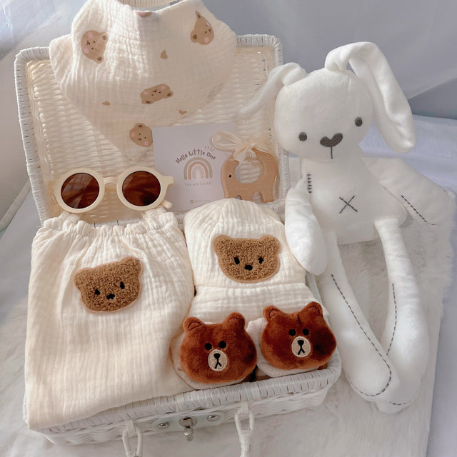 Bring a touch of adorable charm to your gift-giving with the Summer Bear Giftbox! This bear-themed cozy romper, matching accessories, and thoughtful additions that make it perfect for baby showers, birthdays, or special milestones. It’s the ultimate gift for parents who love a playful and cute vibe for their little ones.
