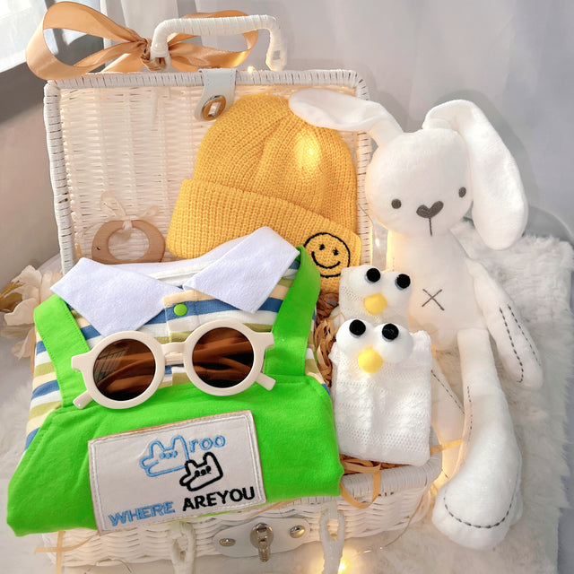 Brighten up any occasion with the Little Green Sprout Giftbox, featuring a charming green-themed outfit paired with a cheerful yellow hat. The cozy striped romper and matching accessories make this set perfect for parents who love a fresh and playful look for their little one. Whether it’s for a baby shower, birthday, or special milestone, this giftbox adds a vibrant touch to every celebration.